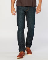 Kaihara Denim Mill, Japan - 11.5oz indigo stretch denim, 98% cotton 2% polyurethane, 3x1 right hand construction, minimal processing with a light hand sanded, pocket edge grind and stone-washed to a rich indigo fade.