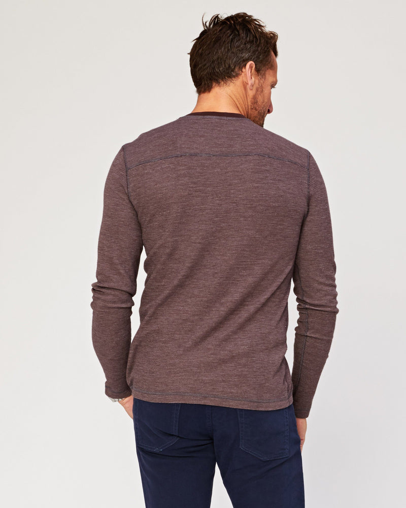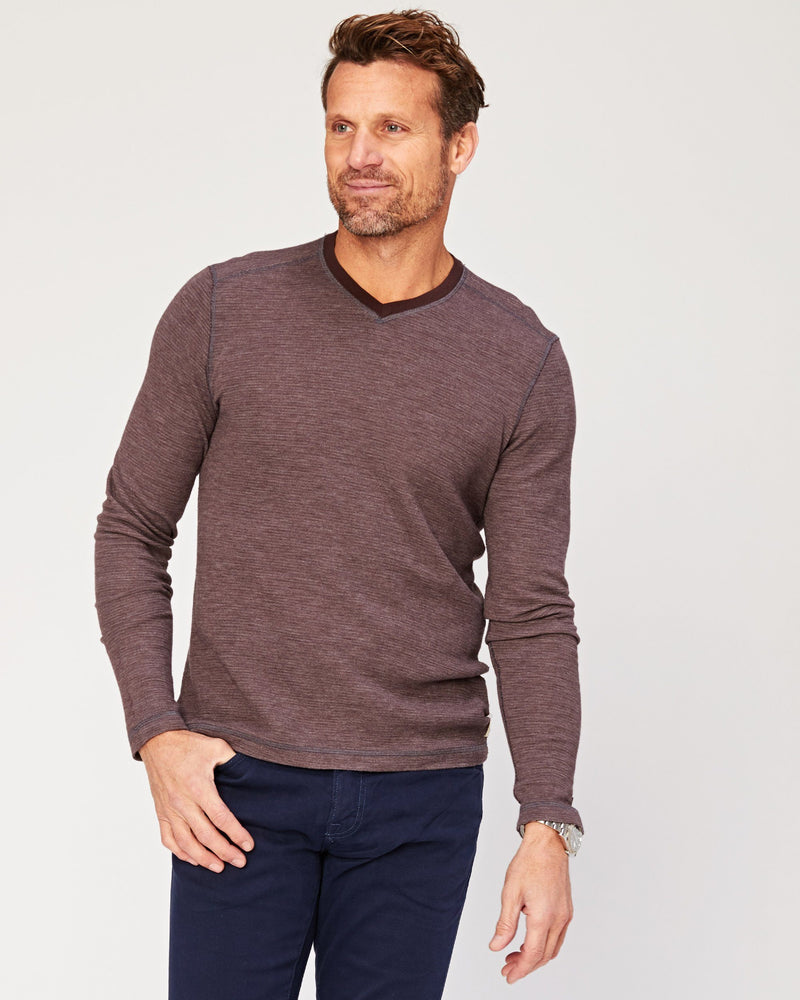 Osler is a long sleeve crew-neck made from an extra soft double knit fabric. It's a tri-blend of cotton, modal, and polyester which makes it both soft and dye with a melanged coloring. The double knit construction